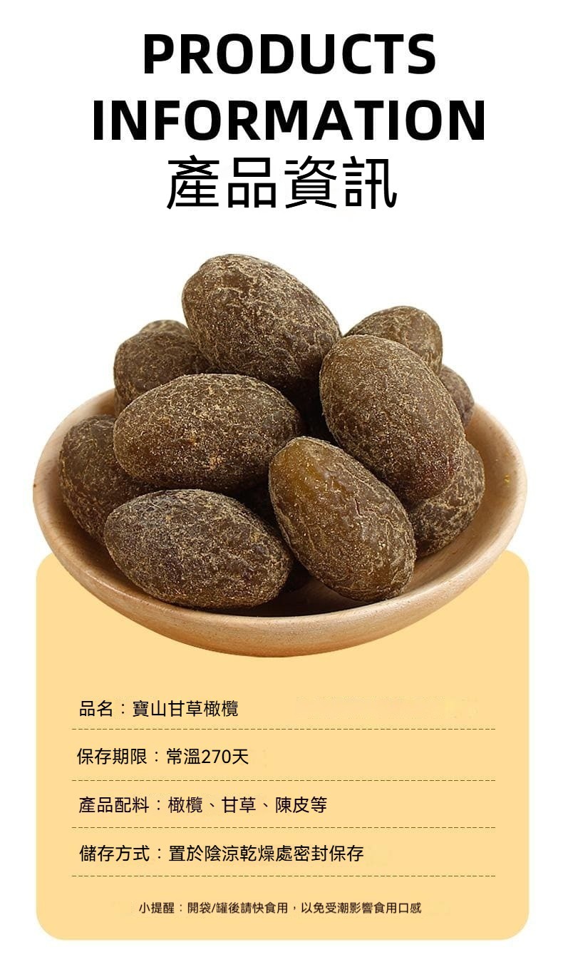 被稱為「生命之樹」的橄欖樹,是高經濟價值的作物,國外一般多將橄欖拿來榨油,但新竹寶山的尖仁橄欖由於品種與歐洲含油量18%以上的橄欖不同,油脂比例僅有約2∼3%,通常會入菜或做成加工品。橄欖本身具有治療咽喉疼痛、預防上呼吸道感染、降血糖的效用,加工成甘草橄欖功效則可加強清肺、利咽、生津、解毒、降血糖、護肝,可作為日常零嘴或炎炎夏日的保健食品。