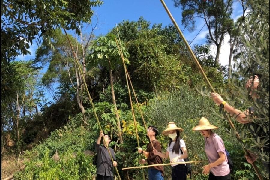 一顆顆綠油油的的橄欖,是寶山農民的驕傲。採收時,農家會在橄欖樹下鋪一片布,再利用長竹竿敲打橄欖樹枝,樹上的橄欖經過撞擊便會掉落,最後就可利用這塊地上的布,將橄欖集中後撿拾。